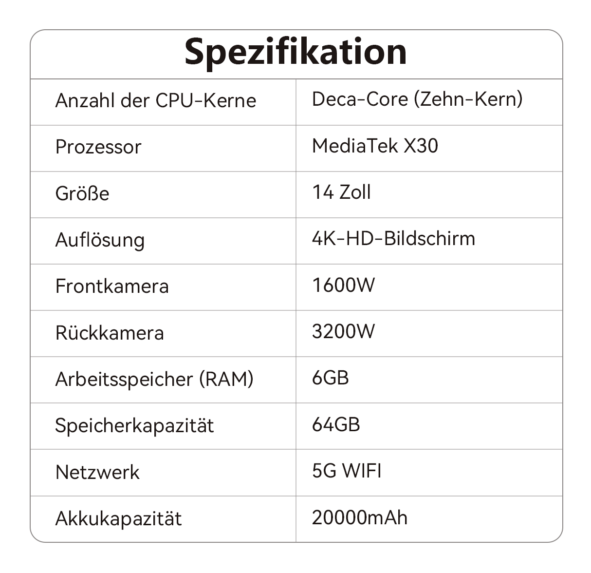 - MTK X30 Prozessor – Liefert eine flüssige Performance für tägliche Aufgaben und Multitasking.